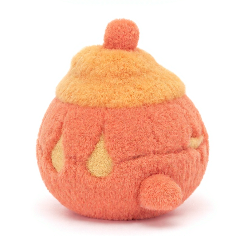 Ta urocza dynia w ciepłym, pomarańczowym kolorze wygląda, jakby właśnie przyszła z jesiennego ogródka. Jej zabawna „czapeczka” i szeroki uśmiech natychmiast wprowadzają dobry nastrój.