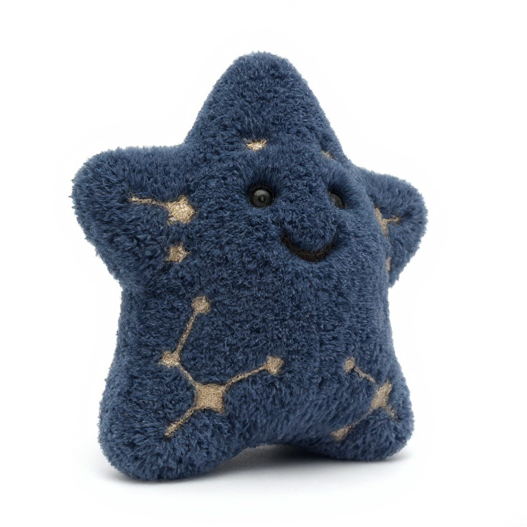 Ta mięciutka gwiazdka kryje w sobie czar nocy. Na jej brzuszku lśnią delikatne konstelacje, które pobudzają wyobraźnię i zapraszają do świata snów.