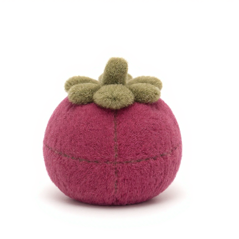 Ten malutki pomidorek promienieje ciepłem i radością. Jego intensywny kolor i wesoły uśmiech od razu poprawiają nastrój.